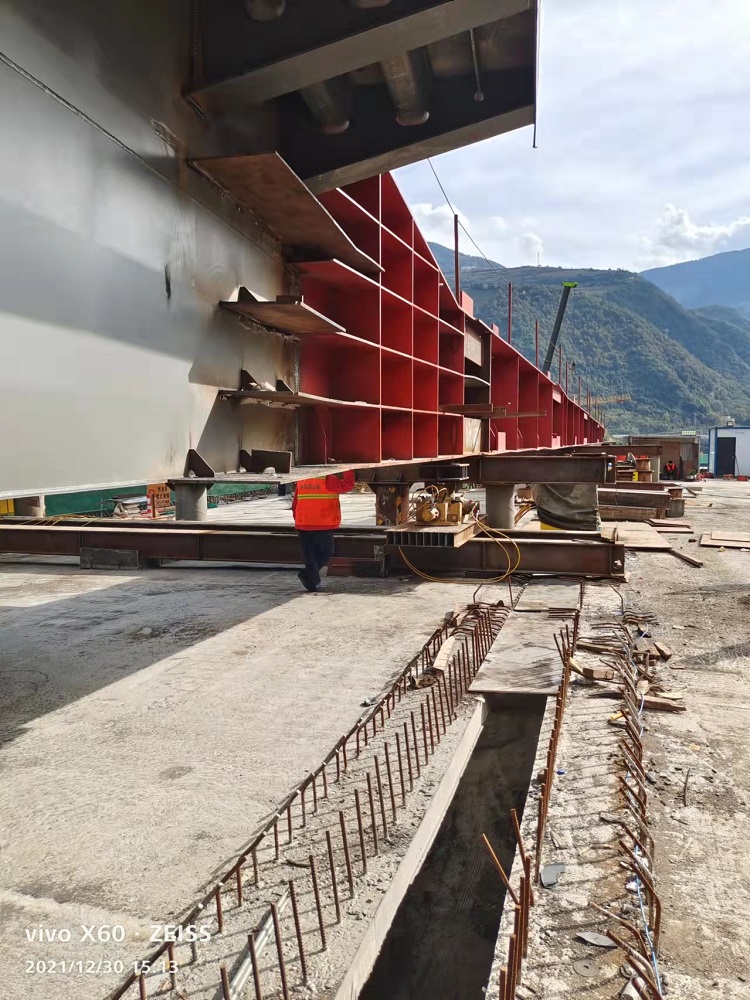 大理平坡立交主線橋鋼箱梁頂推