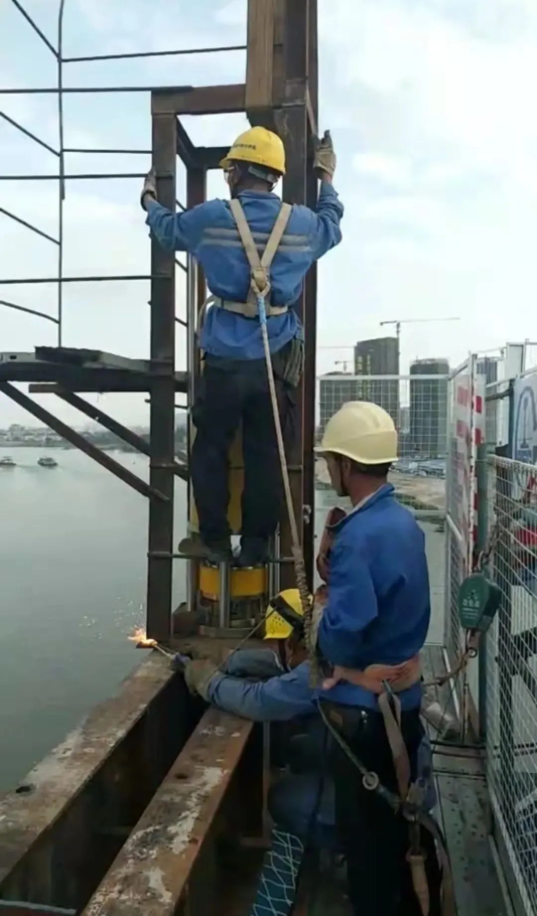 本項目由中鐵大橋局集團有限公司承建,山東超晟輝負責此次大橋主橋鋼箱梁提升工程。日前,施工作業正在有序推進中。